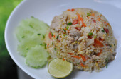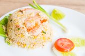solone jaja smażony ryż z krewetkami, tajskie jedzenie