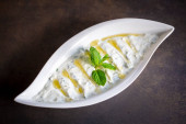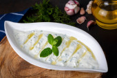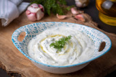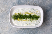 Zdjęcie "Haydari jest rodzajem jogurtu z niektórych ziół i przypraw, w połączeniu z czosnkiem. Kuchnia turecka." może być wykorzystywane do celów osobistych i komercyjnych zgodnie z warunkami zakupionej licencji Royalty-free. Obraz jest dostępny do pobrania w jakości wysokiej rozdzielczości do 5760x3840.