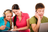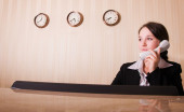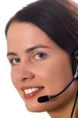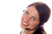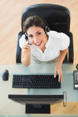 młody biznes kobieta pracuje na komputerze i noszenie słuchawek
