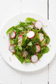 Pyszna sałatka lekka z ogórkami i rukolą, fetą i mikrozielonymi, rzodkiewkami i koperkiem