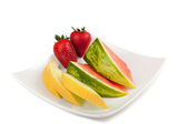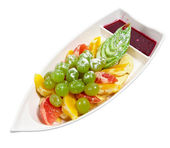 różne owoce w naczyniu w postaci łodzi