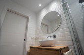 Zdjęcie "Pionowe ujęcie okrągłego lustra na białej ścianie z zlewem i wodociągiem poniżej w łazience" może być wykorzystywane do celów osobistych i komercyjnych zgodnie z warunkami zakupionej licencji Royalty-free. Obraz jest dostępny do pobrania w jakości wysokiej rozdzielczości do 5760x3840.
