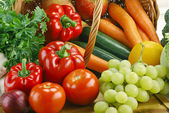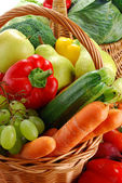 Skład z surowych warzyw i wikliny kosz