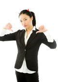 Asian young businesswoman dressed up as black angel showing timeout signal isolated on white background