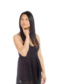Asian young woman dressed up as an angel making time out signal with hands isolated on white background