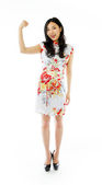 Asian young woman dressed up as a devil and shouting in frustration isolated on white background