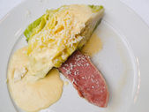 Lamb chop z masłem czosnkowym. tłuczone ziemniaki jako przystawka. serv