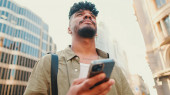 Zdjęcie "Zbliżenie młodego Afroamerykanina w niebieskiej koszulce, siedzącego na ławce w parku i mówiącego przez głośnik. Uśmiechnięty mężczyzna wysyła wiadomość głosową przez telefon komórkowy. koncepcja stylu życia. " może być wykorzystywane do celów osobistych i komercyjnych zgodnie z warunkami zakupionej licencji Royalty-free. Obraz jest dostępny do pobrania w jakości wysokiej rozdzielczości do 5760x3840.