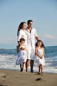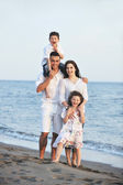 szczęśliwa młoda rodzina baw się dobrze na plaży