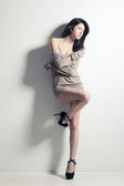 kobieta pozowanie na sobie czarną sukienkę