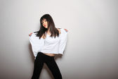 kobieta sobie skórzaną kurtkę