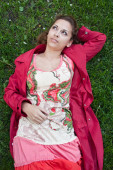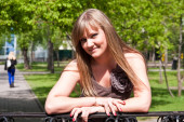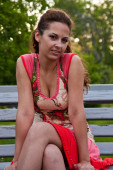 dziewczyna, brunetka, park, emocje