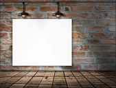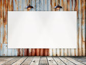 Makiety plakat w białym murem, drewniane podłogi i tło wintge. Koncepcja pionowe