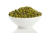 zielone mung fasoli w misce izolowane na białym tle