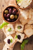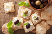 krakersy z miękkim serem i oliwkami. zakąska zdrowy