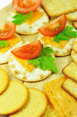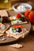 Zdjęcie "krakersy z miękki ser i pomidory. zakąska zdrowy " może być wykorzystywane do celów osobistych i komercyjnych zgodnie z warunkami zakupionej licencji Royalty-free. Obraz jest dostępny do pobrania w jakości wysokiej rozdzielczości do 5760x3840.