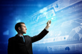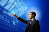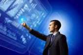 Zdjęcie "młody mężczyzna dotyka powierzchni wirtualne" może być wykorzystywane do celów osobistych i komercyjnych zgodnie z warunkami zakupionej licencji Royalty-free. Obraz jest dostępny do pobrania w jakości wysokiej rozdzielczości do 5760x3840.