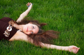 dziewczyna, brunetka, park, emocje