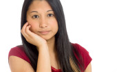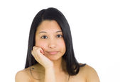 Ekstremalnych bliska młoda kobieta z jej ręce na policzku i szuka smutne