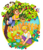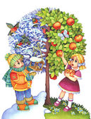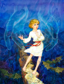 akwarela obraz. średniowieczne Biedna dziewczyna na polu zima