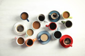 Zdjęcie "Zestaw z filiżankami gorącej kawy aromatycznej na białym tle, widok z góry" może być wykorzystywane do celów osobistych i komercyjnych zgodnie z warunkami zakupionej licencji Royalty-free. Obraz jest dostępny do pobrania w jakości wysokiej rozdzielczości do 5760x3840.