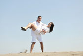 szczęśliwa młoda para baw się na plaży