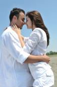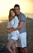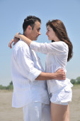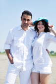 szczęśliwa młoda para baw się na plaży