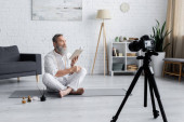 Zdjęcie "trener jogi regulacja aparatu cyfrowego w pobliżu aromatycznych pałeczek i olejów aromatycznych w domu" może być wykorzystywane do celów osobistych i komercyjnych zgodnie z warunkami zakupionej licencji Royalty-free. Obraz jest dostępny do pobrania w jakości wysokiej rozdzielczości do 5760x3840.