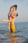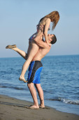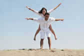 szczęśliwa młoda para baw się na plaży