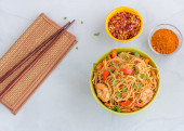 Zdjęcie "makaron na bazie roślin z szczypiorek papryki i nasiona kolendry, zdrowe wegańskie przepisy kulinarne" może być wykorzystywane do celów osobistych i komercyjnych zgodnie z warunkami zakupionej licencji Royalty-free. Obraz jest dostępny do pobrania w jakości wysokiej rozdzielczości do 5760x3840.