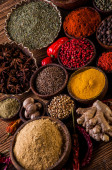 Zdjęcie "Orientalne przyprawy gorąco na drewnianym stole" może być wykorzystywane do celów osobistych i komercyjnych zgodnie z warunkami zakupionej licencji Royalty-free. Obraz jest dostępny do pobrania w jakości wysokiej rozdzielczości do 5760x3840.