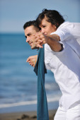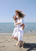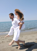 szczęśliwa młoda para baw się na plaży