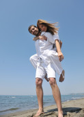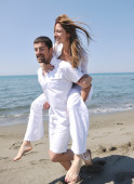 Zdjęcie "szczęśliwa młoda para baw się na plaży" może być wykorzystywane do celów osobistych i komercyjnych zgodnie z warunkami zakupionej licencji Royalty-free. Obraz jest dostępny do pobrania w jakości wysokiej rozdzielczości do 5760x3840.