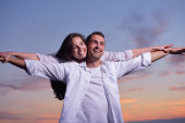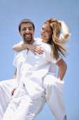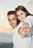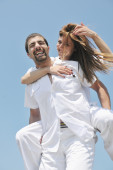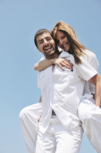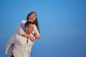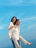 szczęśliwa młoda para baw się na plaży