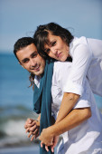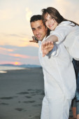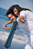 szczęśliwa młoda para baw się na plaży