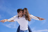 szczęśliwa młoda para baw się na plaży