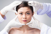 Młoda atrakcyjna kobieta twarzy i koncepcja medyczny uroda