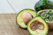 Zdjęcie "Organic avocado with seed, avocado halves, and fresh guacamole in a bowl on a black plate with cloth and cutlery on a gray stone background. Top view. Space for text. Concept of healthy fruit." może być wykorzystywane do celów osobistych i komercyjnych zgodnie z warunkami zakupionej licencji Royalty-free. Obraz jest dostępny do pobrania w jakości wysokiej rozdzielczości do 5760x3840.