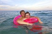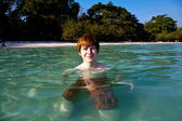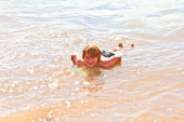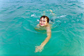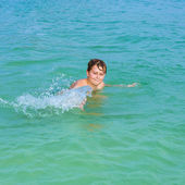 chłopiec ma zabawy w cudowny ciepły ocean i szczyci się wody