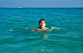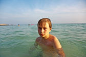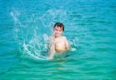 chłopiec ma zabawy w cudowny ciepły ocean i szczyci się wody