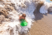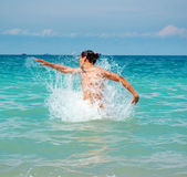 chłopiec ma zabawy w cudowny ciepły ocean i szczyci się wody
