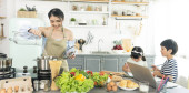Zdjęcie "Szczęśliwa azjatycka rodzina podejmowania przygotowania ciasta i piec ciasteczka w kuchni w domu. Ciesz się rodzinną aktywnością." może być wykorzystywane do celów osobistych i komercyjnych zgodnie z warunkami zakupionej licencji Royalty-free. Obraz jest dostępny do pobrania w jakości wysokiej rozdzielczości do 5760x3840.