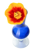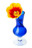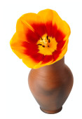 Tulipan kwiaty w doniczce z czerwonej gliny, na białym tle.