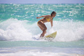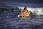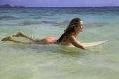 nastoletnia dziewczyna w różowym bikini z jej desek surfingowych