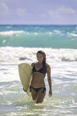 nastoletnia dziewczyna w różowym bikini z jej desek surfingowych