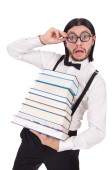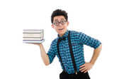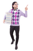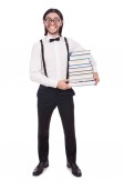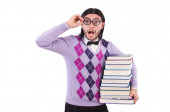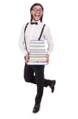 Zdjęcie "Zabawny student z książkami odizolowanymi na białym" może być wykorzystywane do celów osobistych i komercyjnych zgodnie z warunkami zakupionej licencji Royalty-free. Obraz jest dostępny do pobrania w jakości wysokiej rozdzielczości do 5760x3840.