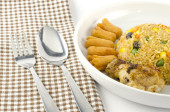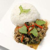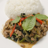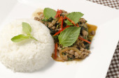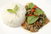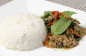 Zdjęcie "Ryż z dodatkiem smażonej wieprzowiny i bazylii" może być wykorzystywane do celów osobistych i komercyjnych zgodnie z warunkami zakupionej licencji Royalty-free. Obraz jest dostępny do pobrania w jakości wysokiej rozdzielczości do 5760x3840.