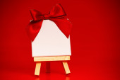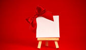 drewniane sztalugi z puste płótno, na Boże Narodzenie czerwony tło