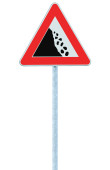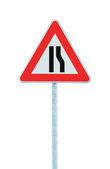 droga zwęża znak na biegun, po lewej stronie, na białym tle ruchu oznakowanie drogowskaz