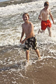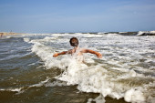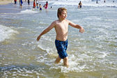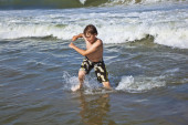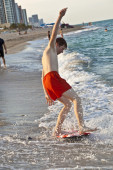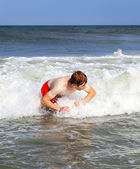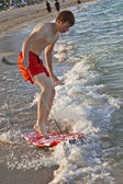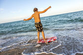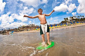 chłopiec nauki surfingu na plaży